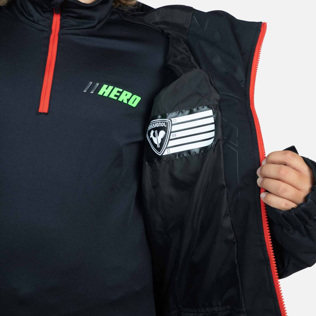 Perfetta per andare a caccia di velocità, la giacca da sci da bambino Rossignol Hero Rapide assicura un calore ottimale per poter sciare più a lungo. L’imbottitura in simil-piumino ad alta densità e una membrana traspirante e impermeabile trattengono il calore e proteggono dalle intemperie. Le funzionalità progettate ad hoc per gli sciatori, come la ghetta antineve integrata, i polsini regolabili e il cappuccio fisso, offrono una maggiore protezione nelle giornate di neve. La giacca è inoltre dotata di tasca dedicata per skipass e di tasche con cerniera per tenere a portata di mano gli oggetti più piccoli. La grafica Hero celebra la ricerca della velocità.